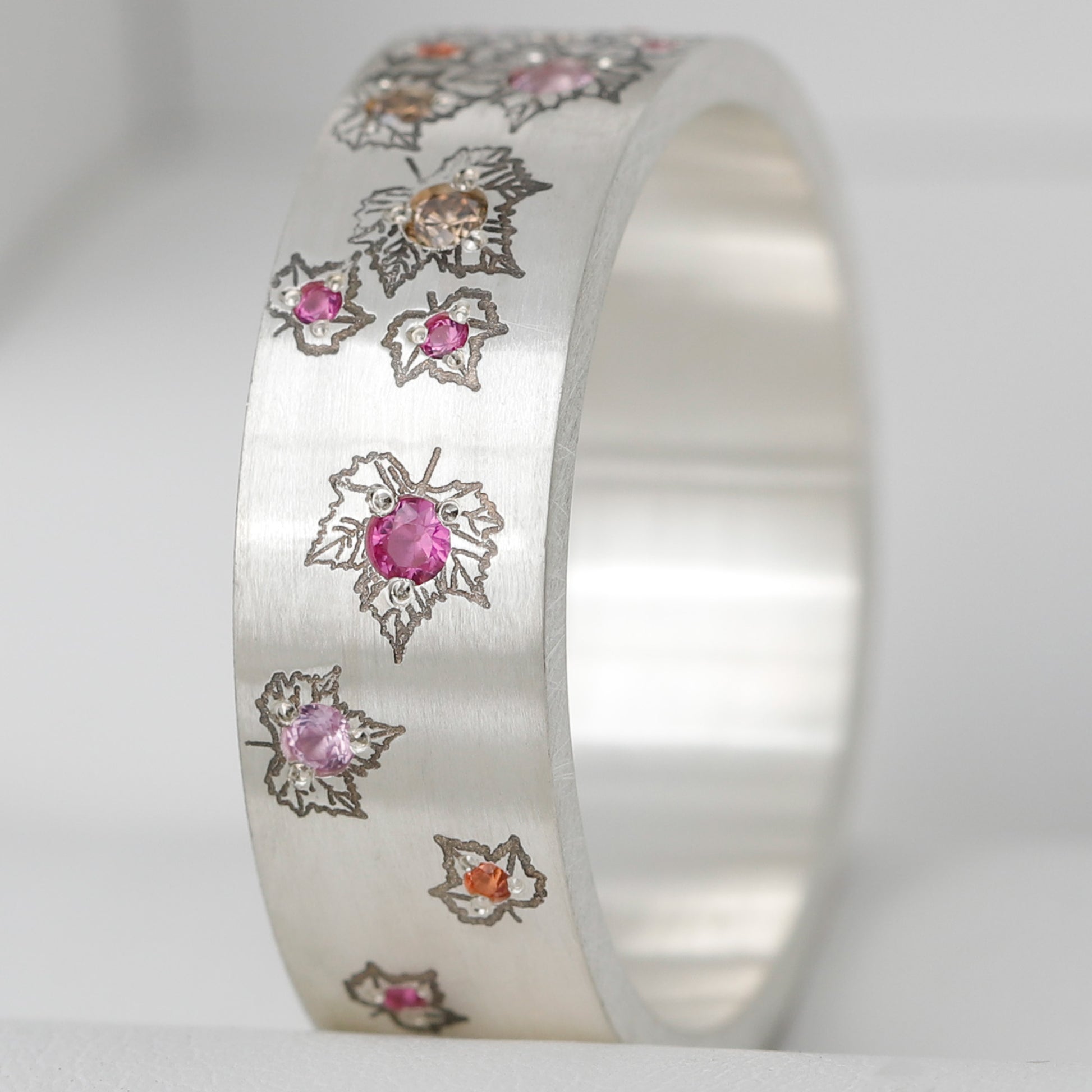 | types de pierres | Saphirs roses, saphirs roses clairs, saphirs orange, diamants bruns, saphirs bruns |