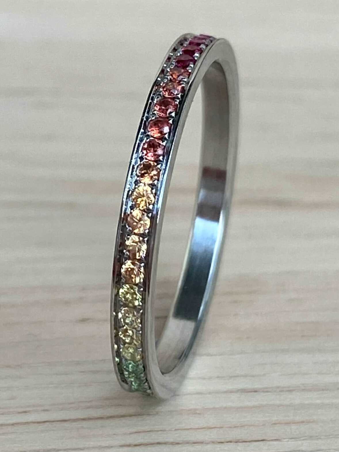 Addon medium acier entièrement serti de saphirs arc-en-ciel 1.3 mm taille 56 - Seconde main