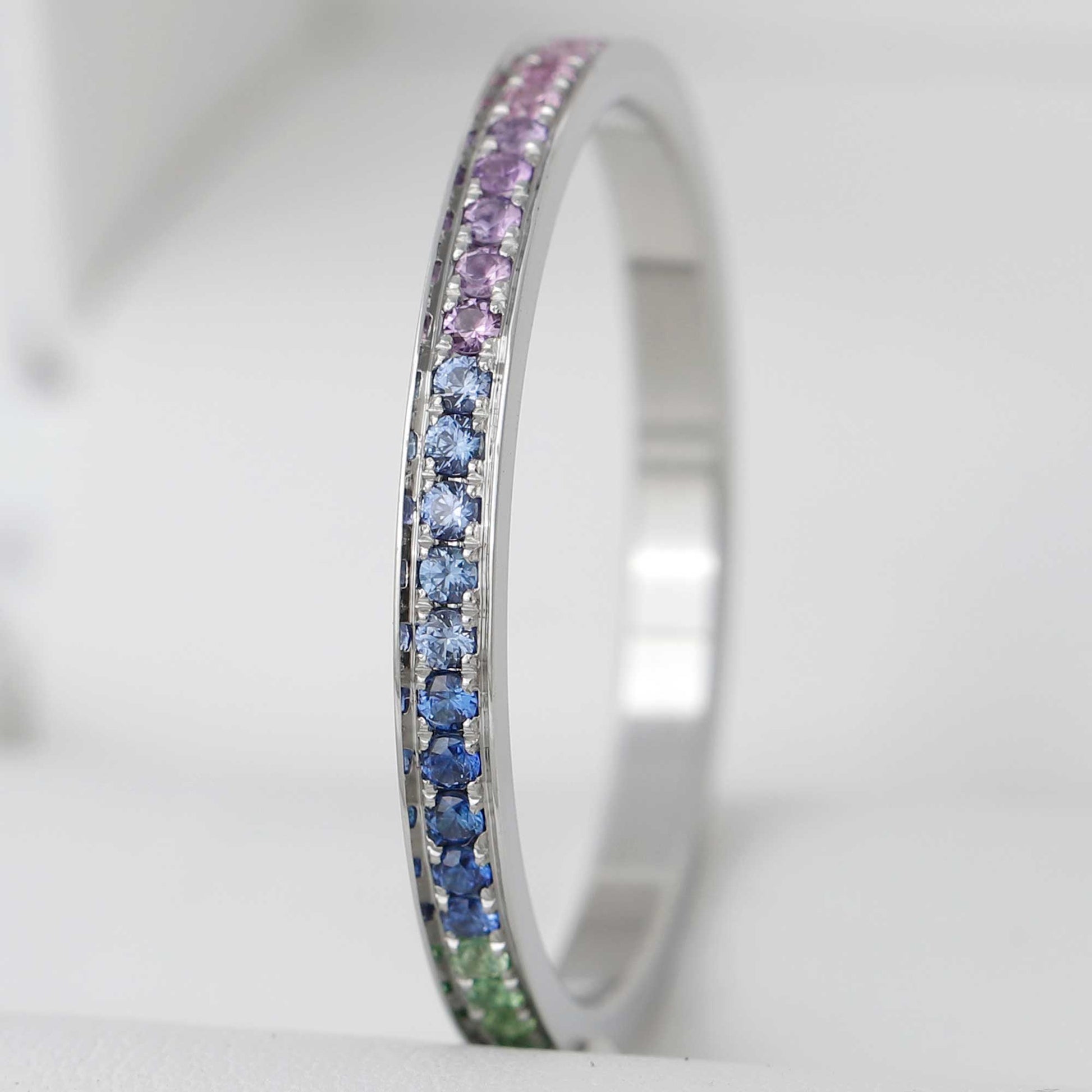Addon medium acier entièrement serti de saphirs arc-en-ciel 1.3 mm taille 60 - Seconde main